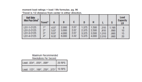 Drive: .168 diameter .125 lead screw with anti-backlash nut.